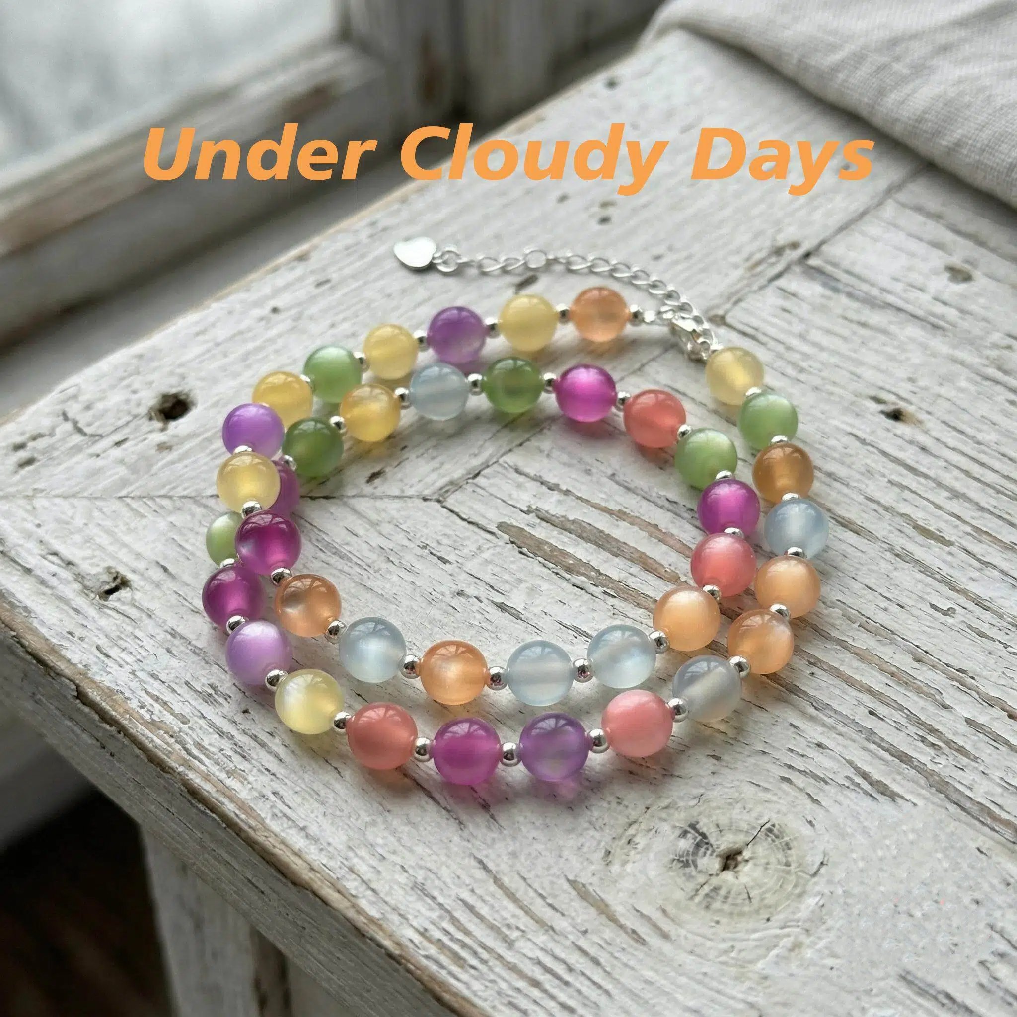 8mm resin beads react to UV light. Inside: clean, classic frosted white. Outside: a burst of rainbow colors. Cloudy or rainy days? Soft pastel hues. Every day is a different look.
